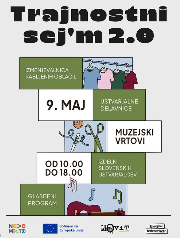 Vabimo vas da se nam v soboto, 9. 5. 2026, pridružite na Muzejskih vrtovih v Novem mestu, kjer bomo med 10. uro in 13. uro prisotni na Trajnostnem Sejmu.